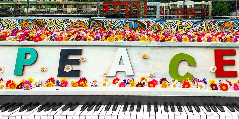 This piano is one of 88 that was donated to the Atlanta community in 2019 as part of the Pianos for Peace Festival. The pianos were placed in public places for everyone to enjoy before being moved to schools, nursing homes, etc.